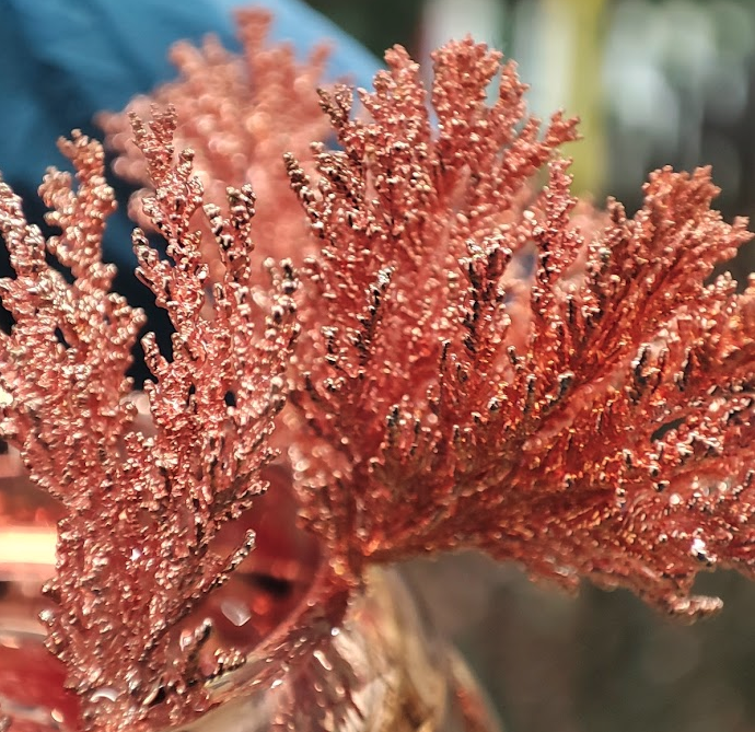When a charged cathode is placed into a solution of some copper salts, it grows these weird dendrites. Look at them, aren't they weird and alien? Let's all get together to point and mock them for their strange appearance.